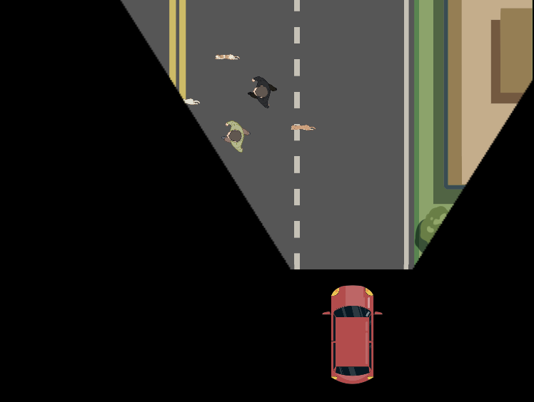 人在醉酒状态中,会有明显的肢体不协调,同时视线收到严重干扰。在该小游戏中,玩家会处于“醉酒”状态中操控车辆,以模拟酒后驾驶的情景。