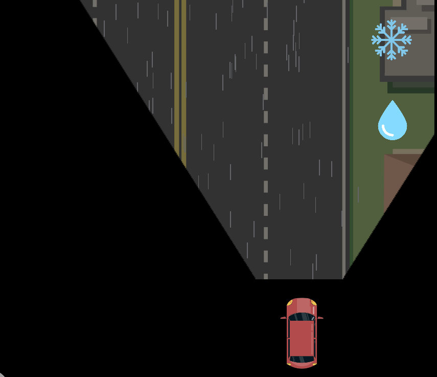 人在醉酒状态中,会有明显的肢体不协调,同时视线收到严重干扰。在该小游戏中,玩家会处于“醉酒”状态中操控车辆,以模拟酒后驾驶的情景。